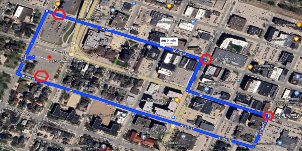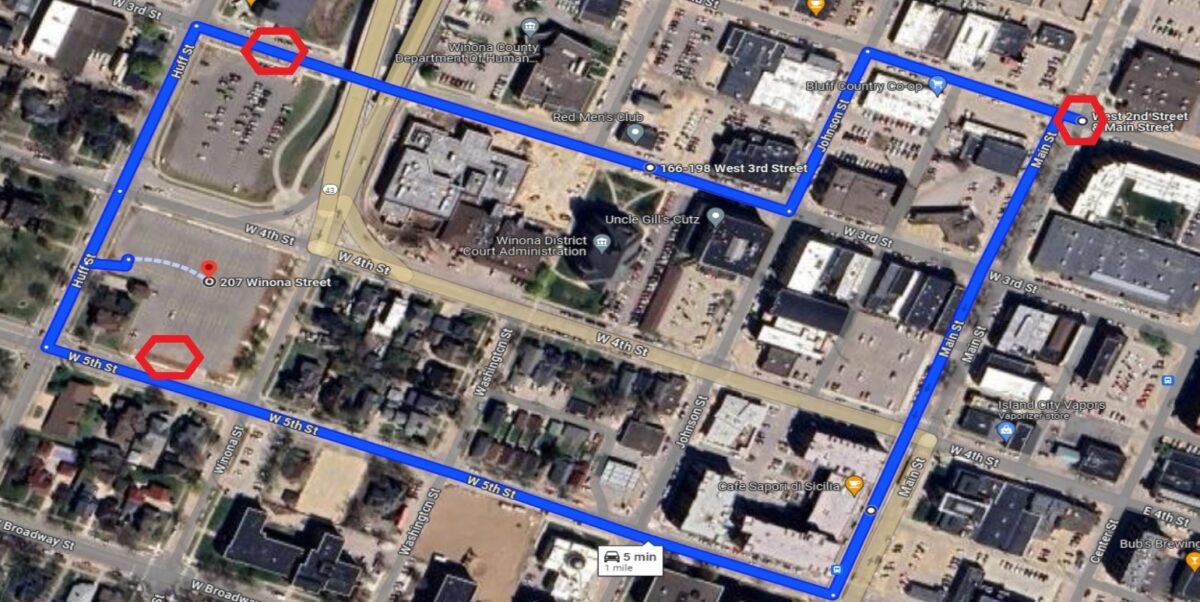 Bus departs every 15 minutes from the parking lot at 207 Winona St.